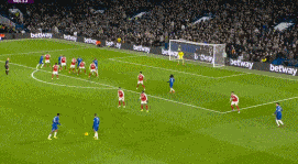 第74分钟,萨卡横传被桑切斯没收,而中路队友已经包抄到位。